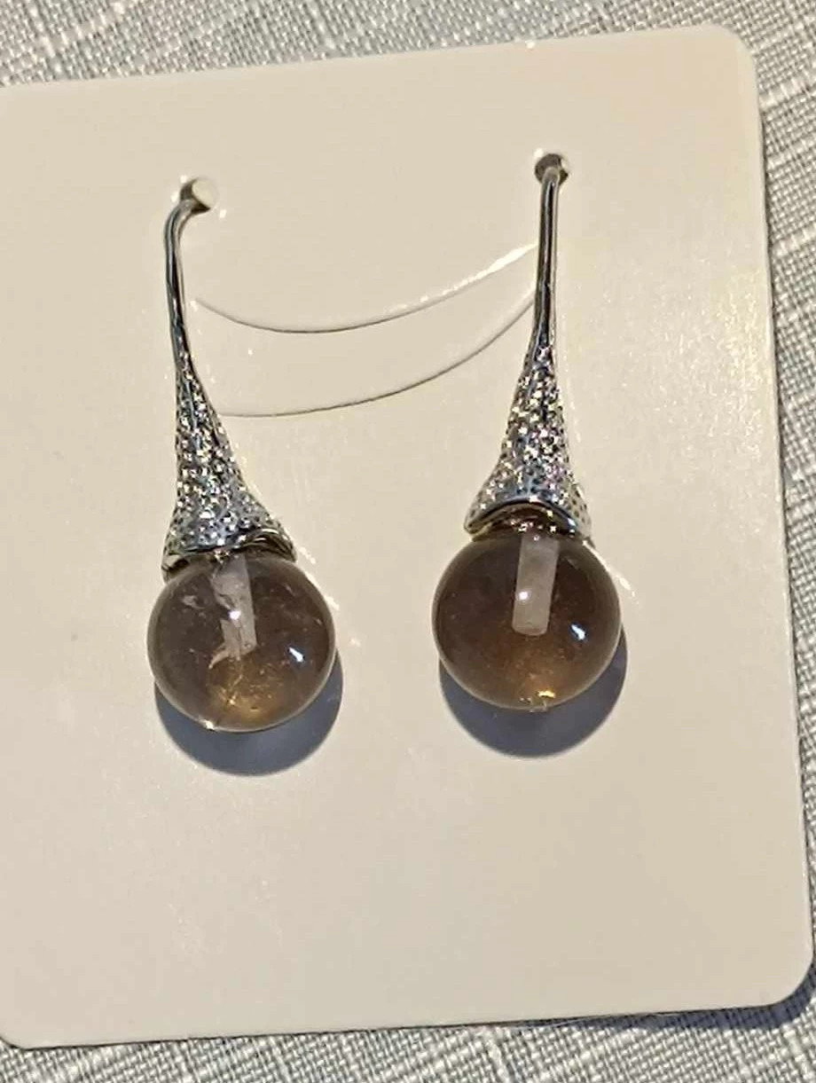 Füstkvarc ásványgolyós , mintás kűrt alakú nikkel mentes nem nemesfém fülbevaló.